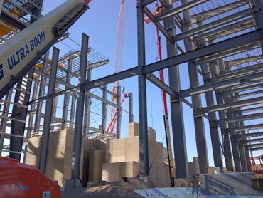 "Scott Steel Erectors, a metal building assembly company, has been working at Red Chris since April 2013 on construction of the process plant. We have crew of 35 on site at any given time, “says the company’s site supervisor, Doug Hood. The process plant is made up of six areas: grinding, flotation, thickener, concentrate storage, reagent, and the electrical annex. Crews built the structural skeleton of the plant first, and then installed insulation, siding and a sheet metal roof to keep the inside warm and dry. Crews assembled and installed all of the building components, including structural steel, wall and roof sheet metal, windows, louvers and doors. They also did the overhead crane installations, and specialized hoisting and rigging. “The project is very challenging, but extremely rewarding,” says Doug. “When I look back at pictures I took six short months ago, I can’t believe how much has been completed. There are 150 transport truckloads of steel in the frames,” he explains. “Doug Hood’s dedicated, skilled crew worked hard – some from 135 foot lifts installing bolts and screws while the temperature dipped to -27C to meet the deadline,” says Red Chris construction manager Alex Cook. “Work is not finished for Doug’s team. Because of their excellent performance, Scott Steel has been awarded another contract. So there are 60 more loads of steel on the way. We look forward to a repeat performance for the installation of the interior steel.” Doug attributes the success to everyone involved in the project!"